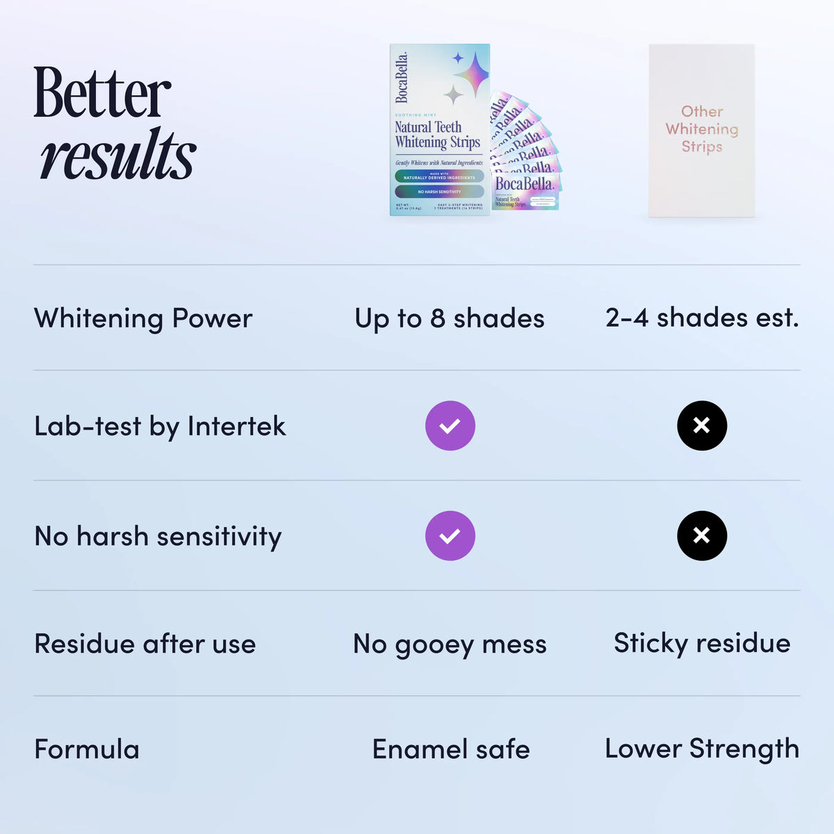 BocaBella whitening strips and U-Wraps are designed to deliver professional-level whitening at home using safe, effective ingredients.